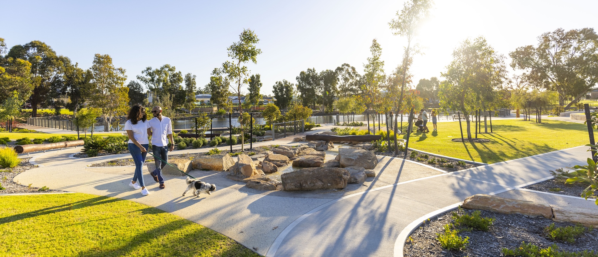 It’s a premium, master-planned community with 47% green space. It’s centred around a picturesque lake with walkable leafy streets, beautiful parks, active play spaces and dog walking areas.