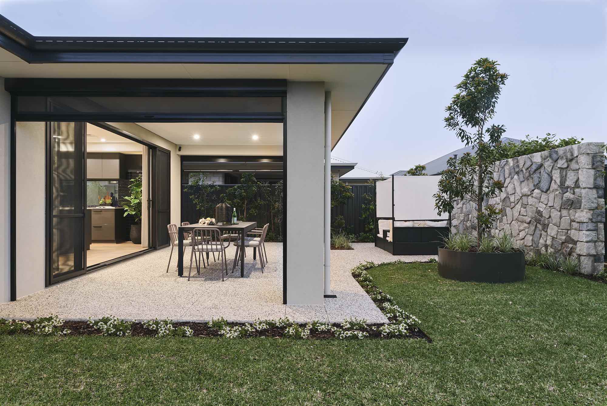 The Barden is a showcase of modern luxury and innovation, that wows in both style and functionality. This Dale Alcock home combines cutting-edge design with features that help manage energy use and promote future focussed living. At the core of its energy-efficient offerings are solar PV panels with battery storage, providing homeowners with the ability to generate and store clean energy. For those considering an electric vehicle, the Barden also includes an EV charger, demonstrating how these systems can work together to assist lowering energy costs over time. The house is designed to maximize natural light through its expansive, vertically proportioned windows, reducing the need for artificial lighting during daylight hours. Further complementing the home's more energy-efficient features is the use of zip tracked blinds in the outdoor alfresco area, which provide protection from wind, rain, and sun, allowing for extended outdoor living while minimizing heating and cooling demands. Technological innovation is seamlessly integrated throughout the home, offering smart home solutions. The MyPlace smart control panel makes for convenient living with the ability to control heating, cooling, and lighting remotely. The Intelligent Homes security system also allows for extra peace of mind with cameras at the front and rear of the property. The Barden’s interior exudes contemporary elegance. From the minimalist yet warm timber floors to the stone finishes that balance style with durability, every detail has been thoughtfully designed while making the home liveable for today and all the days you call it home. With an open-plan kitchen and living area that flows seamlessly to the alfresco, it’s perfect for entertaining. The luxurious parents’ retreat downstairs offers a private escape, while upstairs provides a dedicated kids’ zone with spacious bedrooms, a large bathroom, and a versatile activity area.